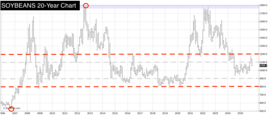 Figure 2: 20-Year History of Corn & Soybean Futures Prices